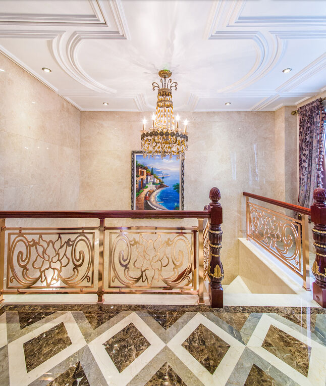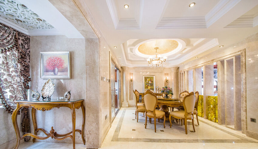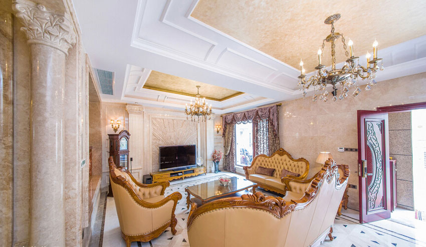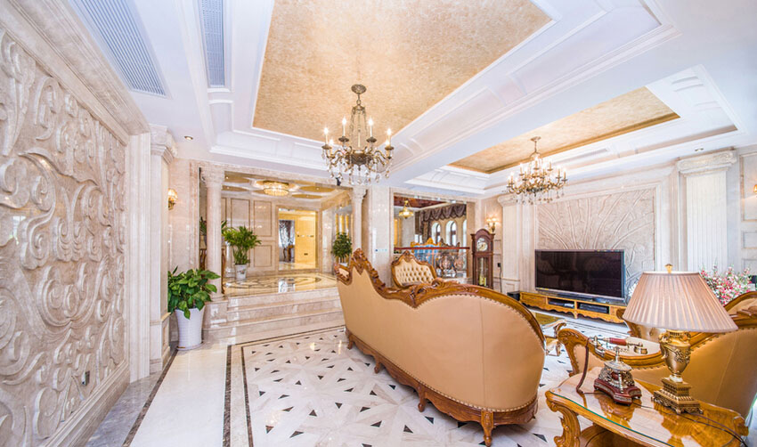 今天由成都别墅装修设计公司里林设计工作室给大家整理了一套现代城350平米别墅装修欧式风格装修设计案例以供大家参考,对于豪宅的装修,除了拥有奢华的外表,还应赋予它“内在美”。一个完美空间的演出,取决于许多因素,动线、材质、比例、灯光、色彩、家饰、定位在细节处体现奢华。唯美硬朗的线条与精心挑选的大理石等材料自然融合,显得空间通透明亮、素雅利索而又大气稳重。色彩上达到背景色,主体色和点缀色的和谐统一,艺术、大气而又有品质。纯铜水晶吊灯、大理石罗马柱、浮雕、拼花的地面、花毯、欧式壁纸,无一不散发出尊贵的气质。每一件奢华的家具无不散发着空间内在的魅力!下面就来看看具体的内容有哪些吧!