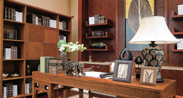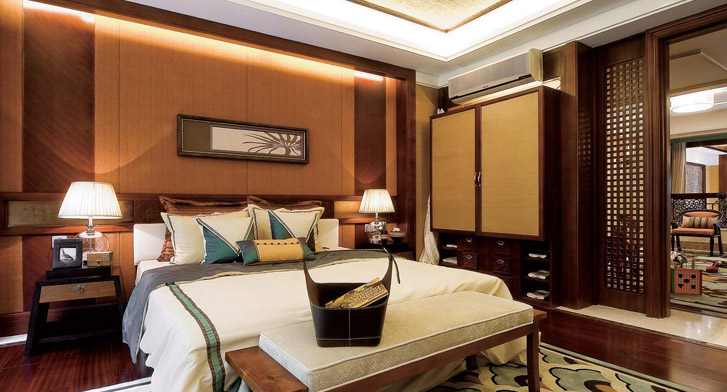 新中式装饰风格的住宅中,空间装饰多采用简洁、硬朗的直线条,有些家庭还会采用具有西方工业设计色彩的板式家具与中式风格的家具搭配使用。直线装饰在空间中的使用,不仅反映出现代人追求简单生活的居住要求,更迎和了中式家居追求内敛、质朴的设计风格,使中式风格更加实用、更富现代感!新中式讲究空间的层次感,依据住宅使用人数和私密程度的不同,需要做出分隔的功能性空间,一般采用“哑口”或简约化的“博古架”来区分;在需要隔绝视线的地方,则使用中式的屏风或窗棂,通过这种新的分隔方式,单元式住宅就展现出中式家居的层次之美。